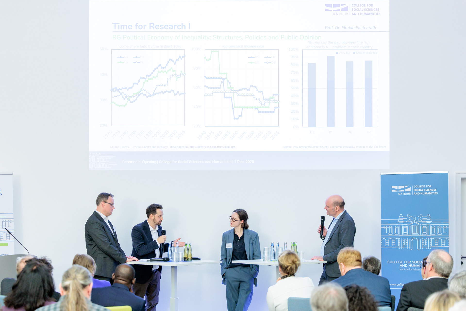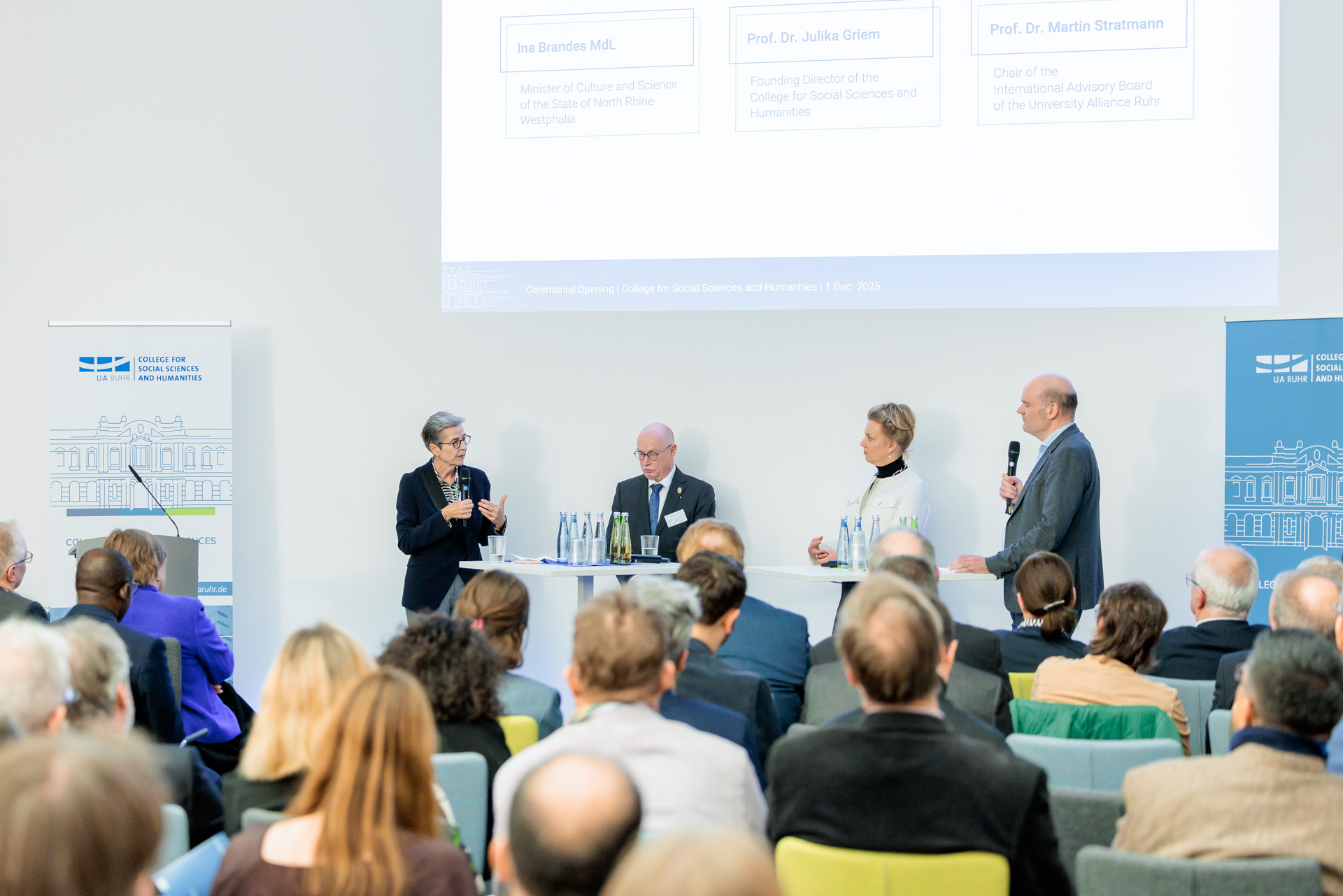 The Minister of Culture and Science of the German state of North Rhine-Westphalia, Ina Brandes MdL, highlighted the College’s role in science and society: "The Ruhr area demonstrates how the transformation from a centre of coal mining to a knowledge region can be successfully achieved. Today, research and science are the resources that ensure good jobs, prosperity and social security. I am therefore delighted to open the College for Social Sciences and Humanities of the Research Alliance Ruhr. Enormous strength is generated when the three major universities in the Ruhr region pool their expertise in the humanities and social sciences. Especially in uncertain times, we need such strong alliances that expertly analyse and explain social developments."