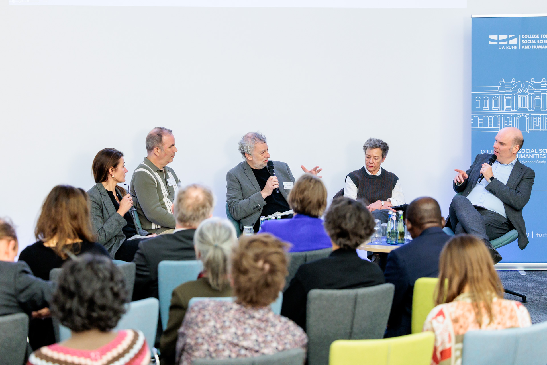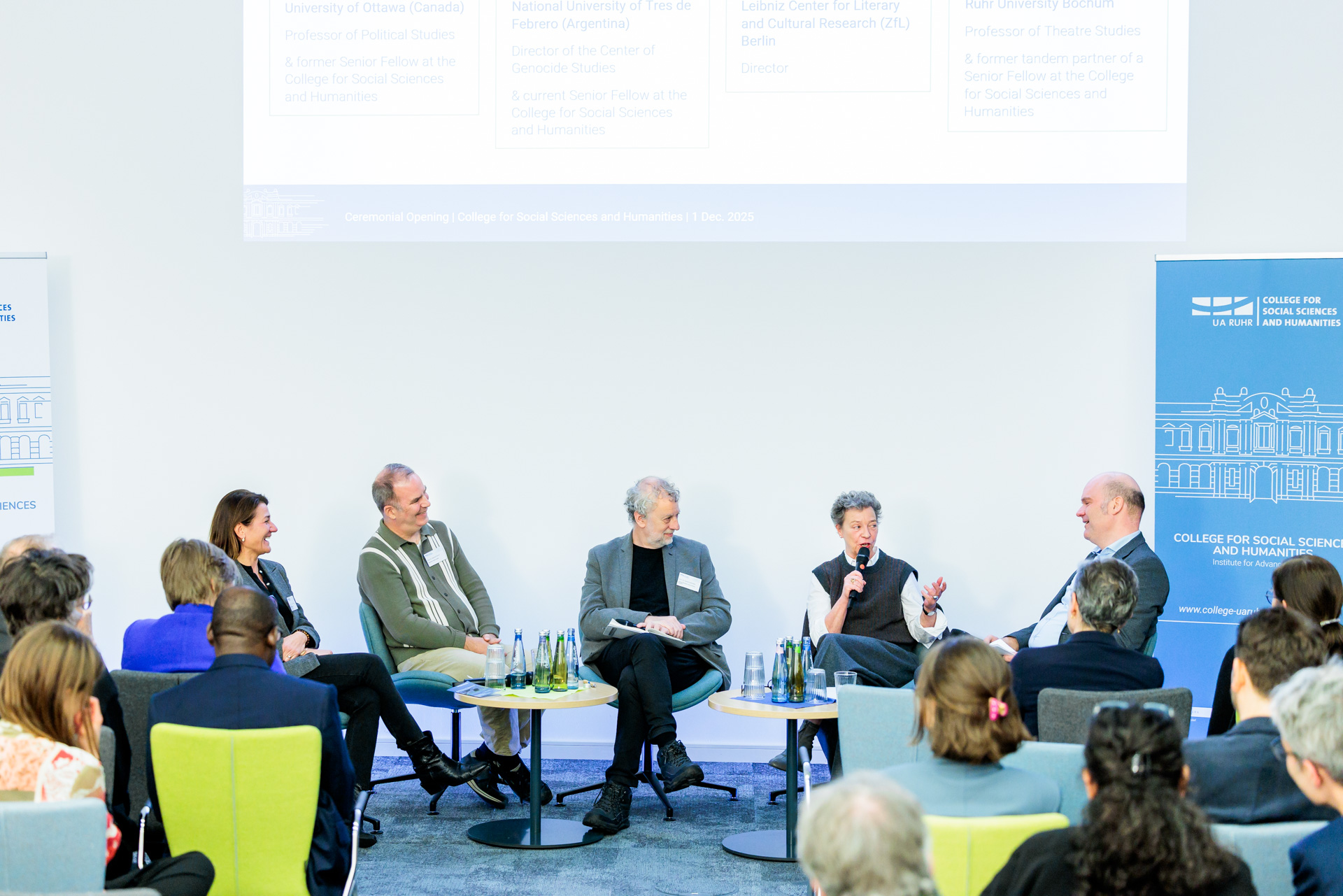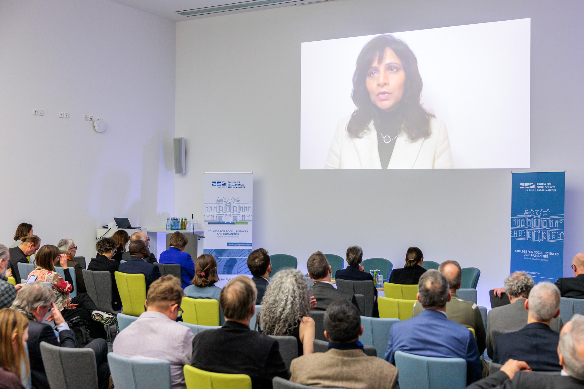 How are universities addressing current challenges and opportunities in international academia? In a keynote lecture, Prof. Dr Rajani Naidoo, UNESCO Professor of Higher Education and Social Change and Vice-President of the University of Exeter (UK), showed how universities can constructively contribute to shaping technological change in the tension between society, politics and economy. The concluding panel discussion focussed on the role of research institutions in the face of threatened democracies. Prof. Dr Stephen Brown, political scientist at the University of Ottawa (Canada) and former fellow at the College, Prof. Dr Daniel Feierstein, sociologist at the National University of Tres de Febrero (Argentina) and current fellow, Prof. Dr Eva Geulen, Director of the Leibniz Center for Literary and Cultural Research in Berlin, and Prof. Dr Dorota Sajewska, theatre studies scholar at Ruhr University Bochum, discussed how academic institutions can respond when academic freedom comes under pressure in the global political arena.
