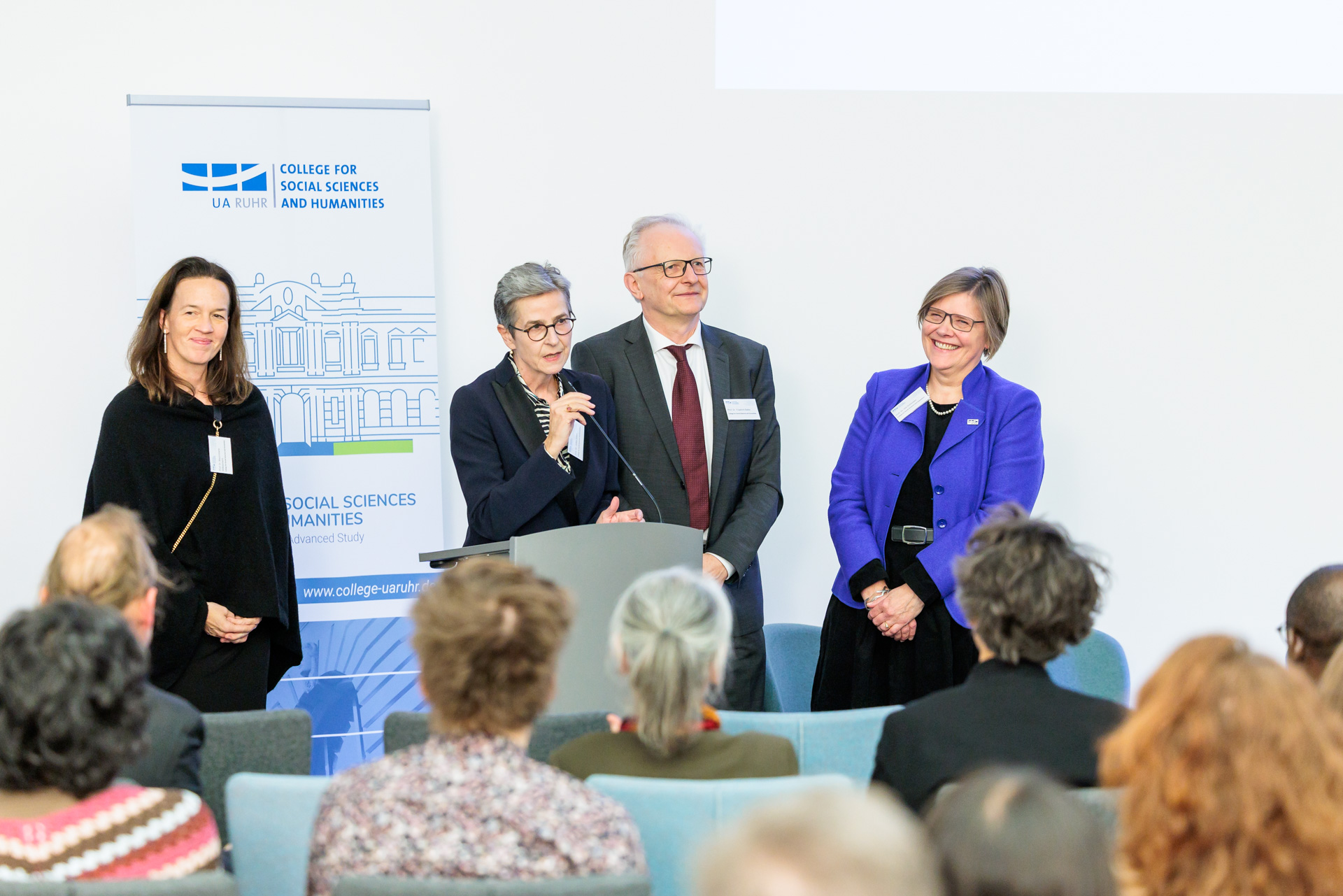 Prof. Martin Paul (Rector of Ruhr University Bochum), Ina Brandes (Minister of Culture and Science of North-Rhine Westphalia), Prof. Julika Griem (Director of the College), Prof. Barbara Albert (Rector of University of Duisburg-Essen), Prof. Ute Schneider (Scientific Board member of the College), Prof. Friedrich Balke (Scientific Board member of the College), Prof. Maximiliane Wilkesmann (Scientific Board member of the College), Prof. Manfred Bayer (Rector of TU Dortmund University)