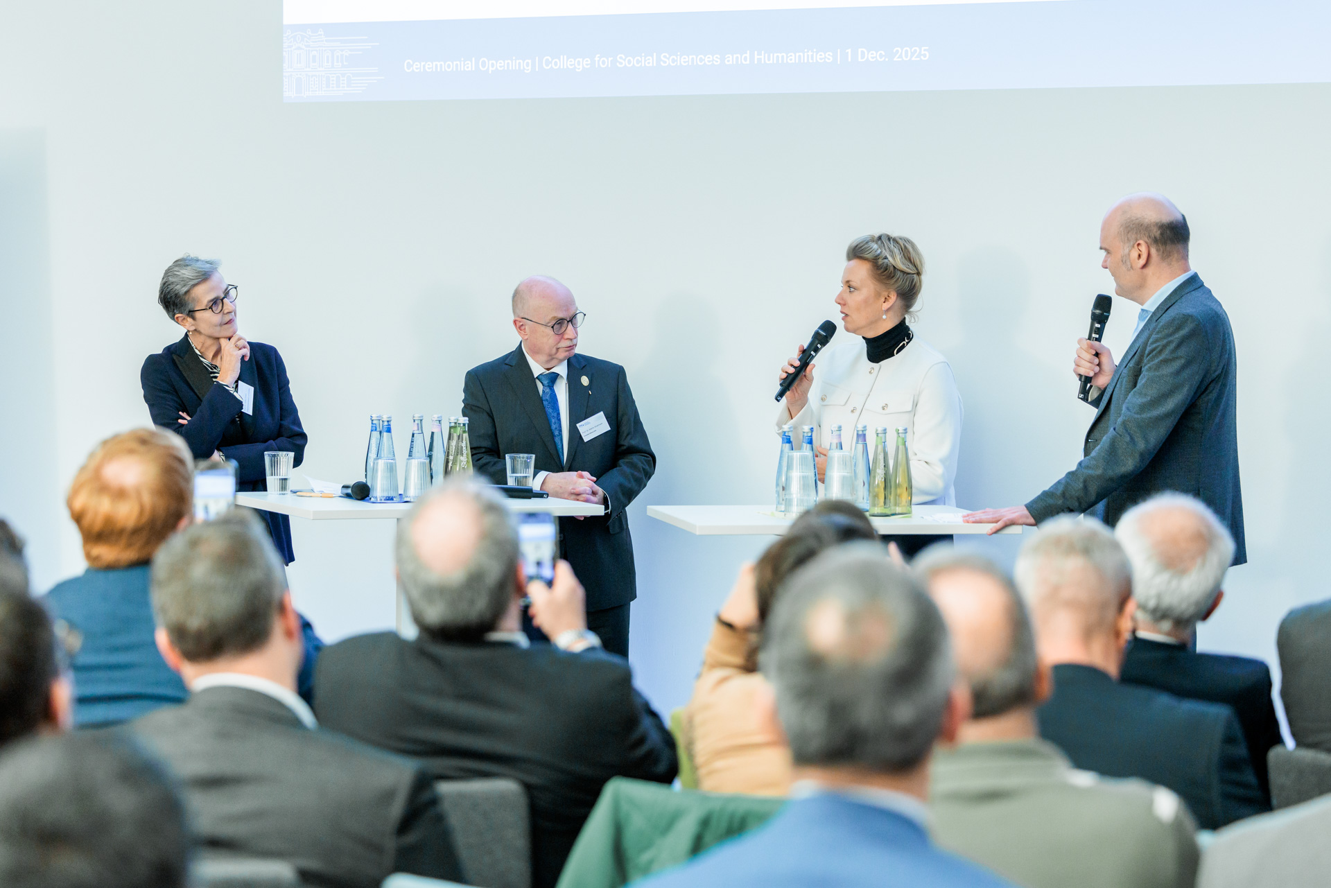 At the ceremonial opening on 1 December, the professors of the College provided insights into their research fields. For instance, Prof. Dr Tahani Nadim – in dialogue with civil society and archives – investigates how memory culture and curatorial practices are changing through digital technologies. Another focus is on environmental humanities, which examine the social and cultural aspects of environmental transformation. In three research groups, the junior professors Dr Elena Beregow, Dr Florian Fastenrath and Dr Matthias Kranke are exploring, among other aspects, how we culturally deal with (increasing) sweating in times of climate change, whether sustainability can be governed globally, and how politics addresses social inequality.